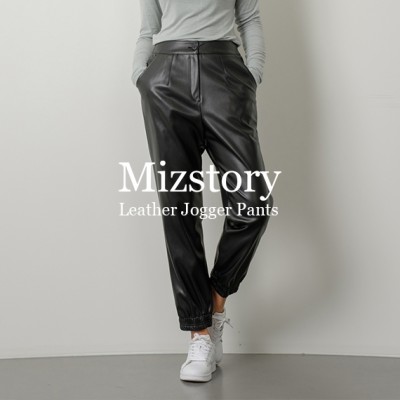 - 미즈스토리 MIZ B2021_03_레더 밴딩 조거 팬츠(2color)