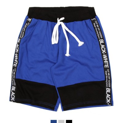 - 남자바지 사선 레터링 테이프 밴딩 반바지