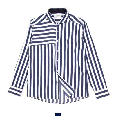 - [빅사이즈]와이드카라 볼드 블루 스트라이프 남자셔츠