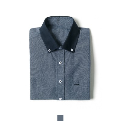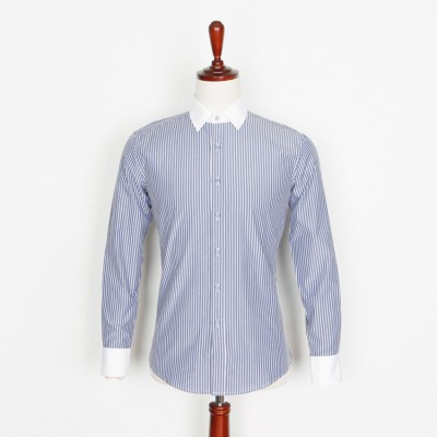 - 남자남방 카라배색 네이비 슬림핏 도트 셔츠