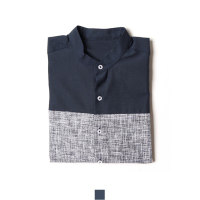 - 남자셔츠 차이나카라 배색 긴팔 셔츠