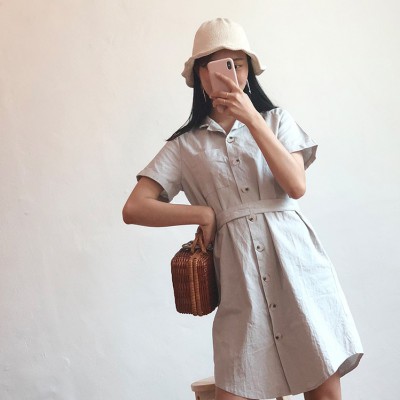 - 스트라이프 루즈핏 린넨 여자반팔셔츠