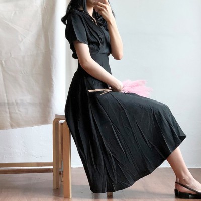 - 세컨스킨 모달 베이직 스마킹 하프슬리브 롱드레스 NAWSD40089900F