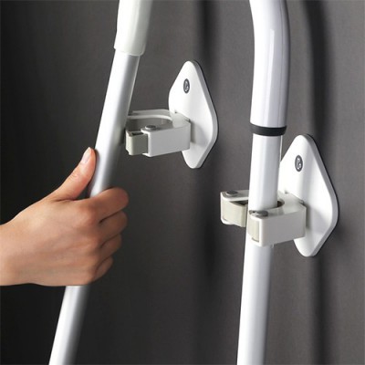 - 화이트 접착식 심플 청소도구걸이