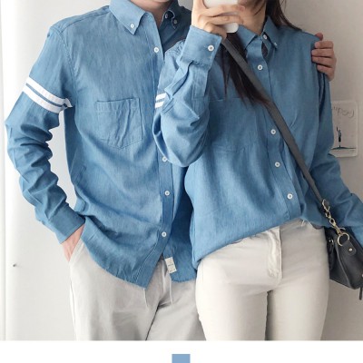 - 커플시밀러룩 더블라인 청남방 셔츠
