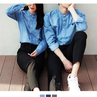 - 커플시밀러룩 빅사이즈 헨리넥 청남방