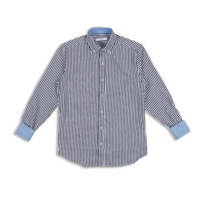 - 남자셔츠 네이비 스트라이프 소매 포인트 배색 와이셔츠
